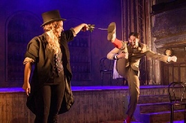 Mike Slader makes for a comically over-the-top Aguecheek, reminiscent of a greasy Crispin Glover - A Spy in the Stalls