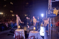 Onstage at the Elephant Jazz Club his tight ensemble of actor-musicians take it away with their big brassy sound - What’s on Stage